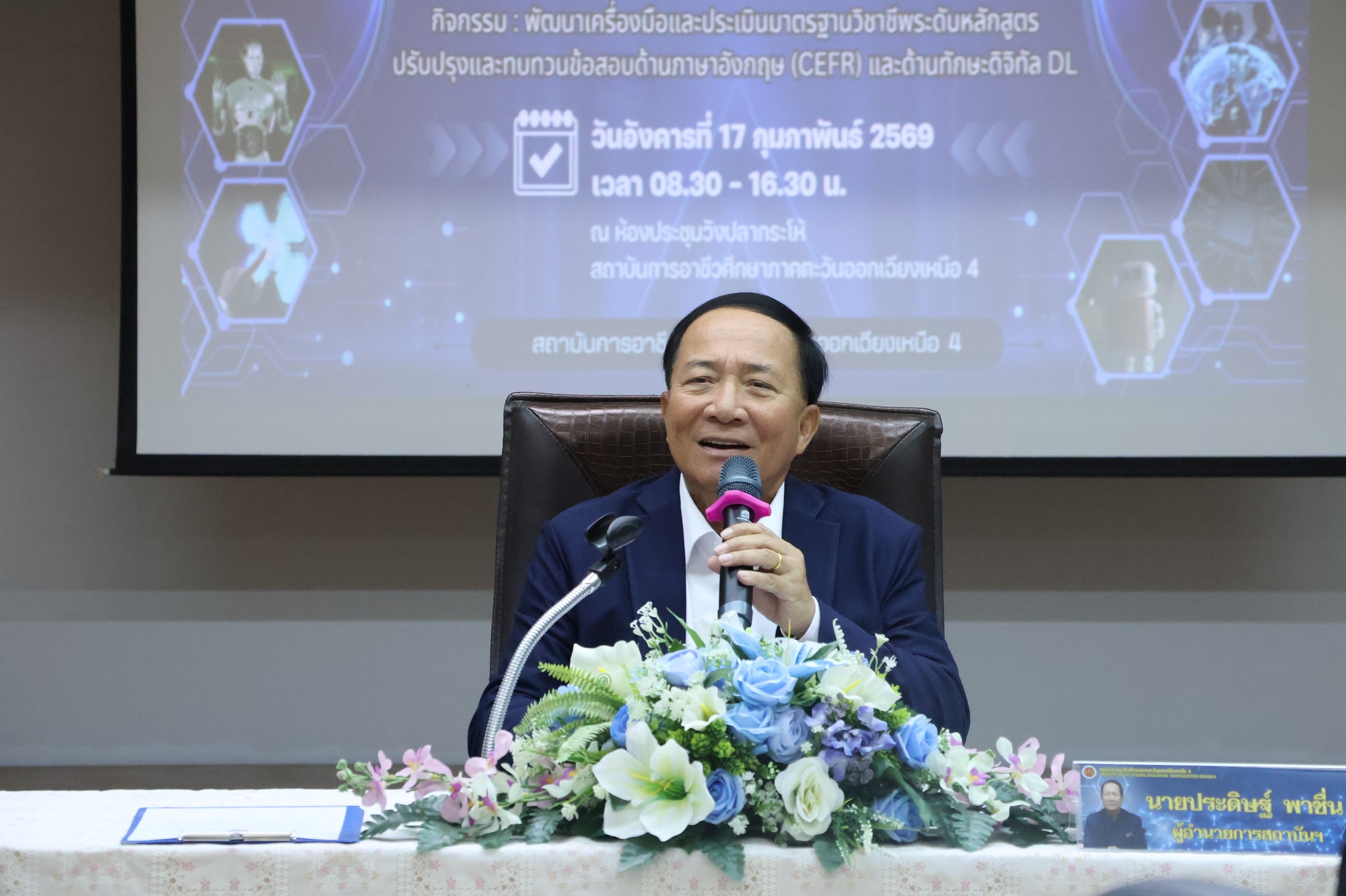 นายประดิษฐ์ พาชื่น ผู้อำนวยการสถาบันการอาชีวศึกษาภาคตะวันออกเฉียงเหนือ 4 เป็นประธานในการประชุมโครงการทดสอบมาตรฐานวิชาชีพ มาตรฐานด้านเทคโนโลยีดิจิทัลและทดสอบสมิทธิภาพทางภาษาอังกฤษ ตามมาตรฐาน CEFR B2 ระดับปริญญาตรีสายเทคโนโลยีหรือสายปฏิบัติการ ประจำปีการศึกษา 2568 พร้อมด้วย คณะผู้บริหารสถาบัน คณาจารย์ประจำหลักสูตรฯในสังกัดสถาบัน และบุคลากรที่เกี่ยวข้อง เข้าร่วมโครงการในครั้งนี้ เพื่อพัฒนาเครื่องมือประเมินมาตรฐานวิชาชีพ ระดับหลักสูตร พิจารณาปรับปรุงและทบทวนแนวข้อสอบด้านภาษาอังกฤษ (CEFR) และด้านทักษะดิจิทัล DL หลักสูตรเทคโนโลยีบัณฑิต ณ ห้องประชุมวังปลากระโห้ สถาบันการอาชีวศึกษาภาคตะวันออกเฉียงเหนือ 4 วันอังคารที่ 17 กุมภาพันธ์ 2569 📷 ดาวน์โหลดรูปภาพได้ที่ >>> https://drive.google.com/…/1gF8QLZ8BX5TX9LrLAQPDCEfc09…