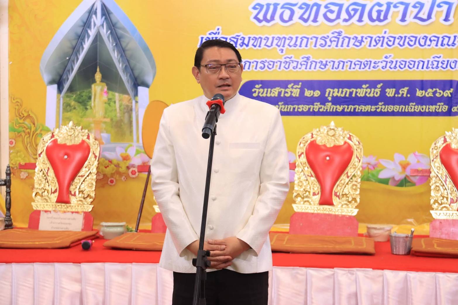 นายวิทวัต ปัญจมะวัต รองเลขาธิการคณะกรรมการการอาชีวศึกษา ให้เกียรติเป็นประธานในพิธีทอดผ้าป่า เพื่อสมทบทุนการศึกษาต่อของคณาจารย์ สถาบันการอาชีวศึกษาภาคตะวันออกเฉียงเหนือ 4 โดยมี นายนิยม ศรีวิเศษ นายกสภาสถาบันการอาชีวศึกษาภาคตะวันออกเฉียงเหนือ 4 และนายประดิษฐ์ พาชื่น ผู้อำนวยการสถาบันการอาชีวศึกษาภาคตะวันออกเฉียงเหนือ 4 นำคณะกรรมการสภาสถาบัน คณะผู้บริหารสถาบัน คณะผู้บริหารสถานศึกษา คณาจารย์ และบุคลากรที่เกี่ยวข้องในสังกัดสถาบันการอาชีวศึกษาภาคตะวันออกเฉียงเหนือ 4 เข้าร่วมพิธีในครั้งนี้อย่างพร้อมเพรียง ณ สถาบันการอาชีวศึกษาภาคตะวันออกเฉียงเหนือ 4 วันเสาร์ที่ 21 กุมภาพันธ์ 2569