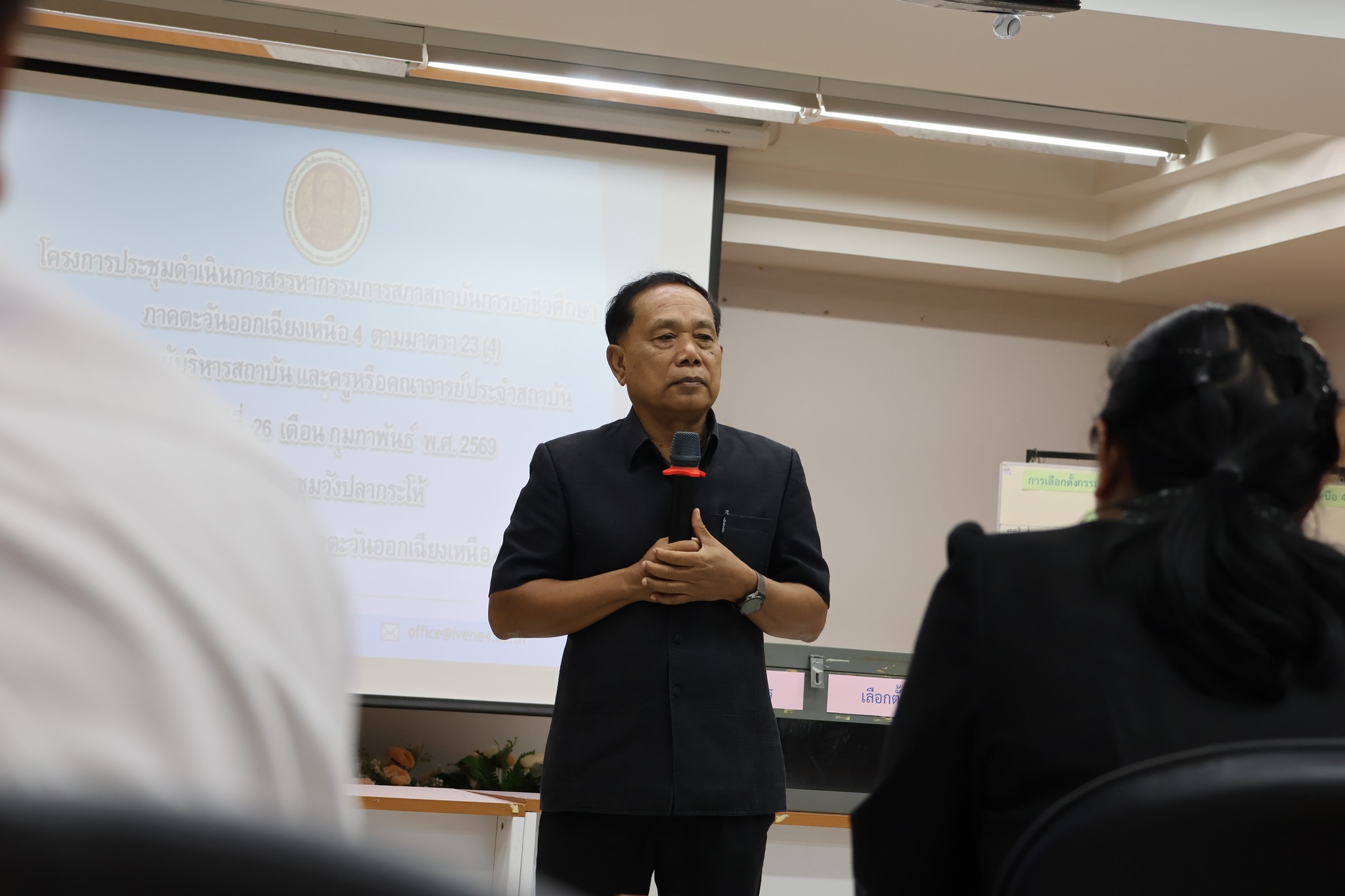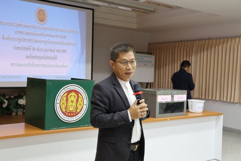 นายประดิษฐ์ พาชื่น ผู้อำนวยการสถาบันการอาชีวศึกษาภาคตะวันออกเฉียงเหนือ 4 มอบหมายให้ นายลิขิต พลเหลา รองผู้อำนวยการสถาบันการอาชีวศึกษาภาคตะวันออกเฉียงเหนือ 4 ทำหน้าที่ ประธานคณะกรรมการสรรหากรรมการสภาสถาบัน มาตรา 23 (4) ดำเนินการสรรหากรรมการสภาสถาบัน มาตรา 23 (4) ผู้แทนผู้บริหารสถานศึกษา และผู้แทนครูหรือคณาจารย์ประจำสถาบัน โดยมี คณะผู้บริหารสถาบันฯ คณะผู้บริหารสถานศึกษา และคณาจารย์ในสังกัดของสถาบันฯ ได้เข้าร่วมรับฟังการแสดงวิสัยทัศน์ของผู้เข้ารับการสรรหาเพื่อแต่งตั้งให้ดำรงตำแหน่งกรรมการสภาสถาบัน มาตรา 23 (4) ณ ห้องประชุมวังปลากระโห้ สถาบันการอาชีวศึกษาภาคตะวันออกเฉียงเหนือ 4 วันพฤหัสบดีที่ 26 กุมภาพันธ์ 2569