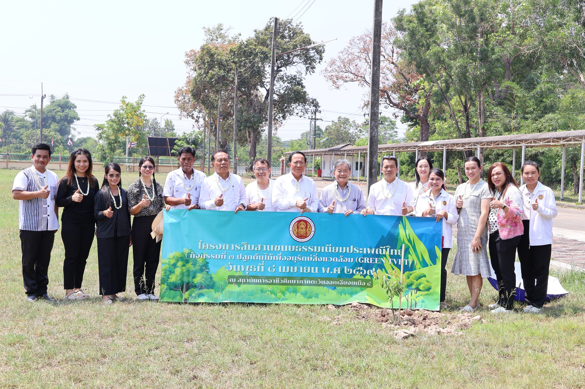 นายประดิษฐ์ พาชื่น ผู้อำนวยการสถาบันการอาชีวศึกษาภาคตะวันออกเฉียงเหนือ 4 และคณะผู้บริหาร บุคลากรสถาบันฯ ทุกคนร่วมกันปลูกต้น ต้นมะยงชิด (Marian Plum) เพื่อเป็นการอนุรักษ์ป่าและช่วยลดโลกร้อน ในวันพุธที่ 8 เมษายน 2569 เวลา 09.00 น. ณ บริเวณ ด้านหลังสนามฟุตบอลฝังทิศตะวันตก สถาบันการอาชีวศึกษาภาคตะวันออกเฉียงเหนือ 4